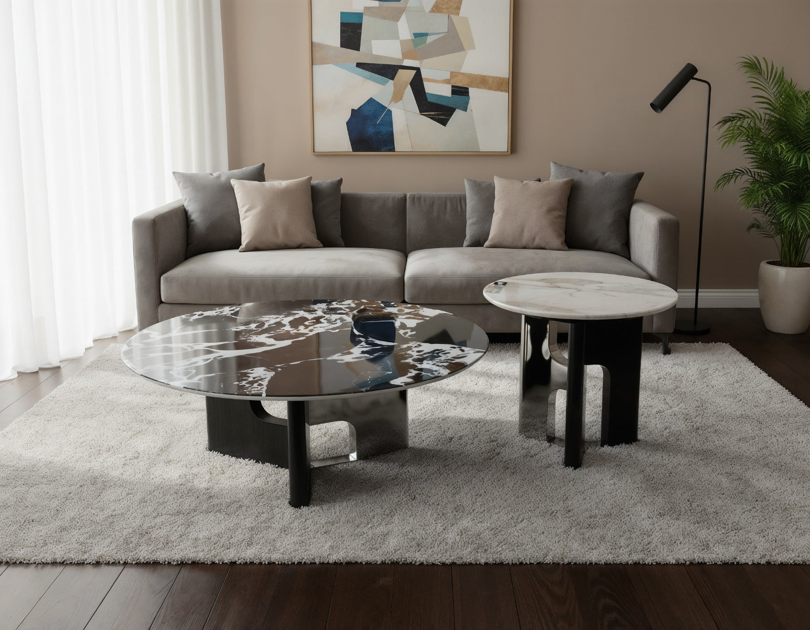 Belarus Coffee Table Set – Premium Marble Duo with Sculptural Stainless-Steel Bases