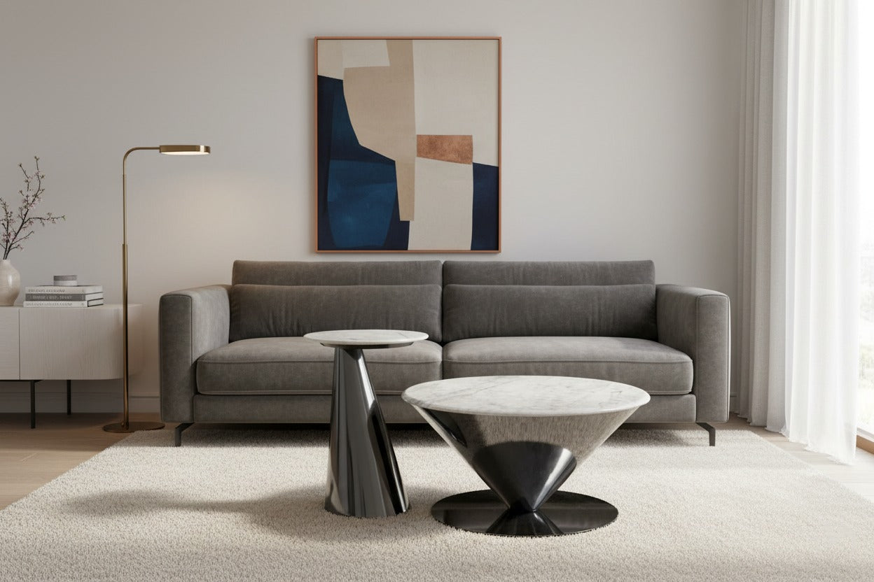 The UFO Coffee Table Set offers a bold blend of elegance and futuristic design. Its marble tops add timeless luxury, while the sculptural bases bring a high-end, gallery-like aesthetic. Perfect for modern living rooms seeking a standout centrepiece with real visual impact.